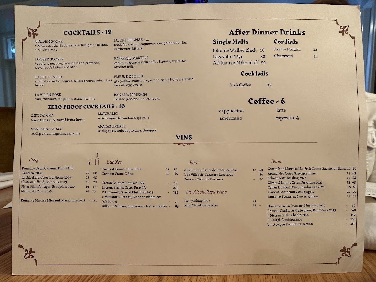 For starters, the Salmon Rillette and Mushroom Soup provide a comforting and flavorful beginning to any meal, while the Prix Fixe $85 offers a full-course experience for those seeking a more indulgent dining experience.